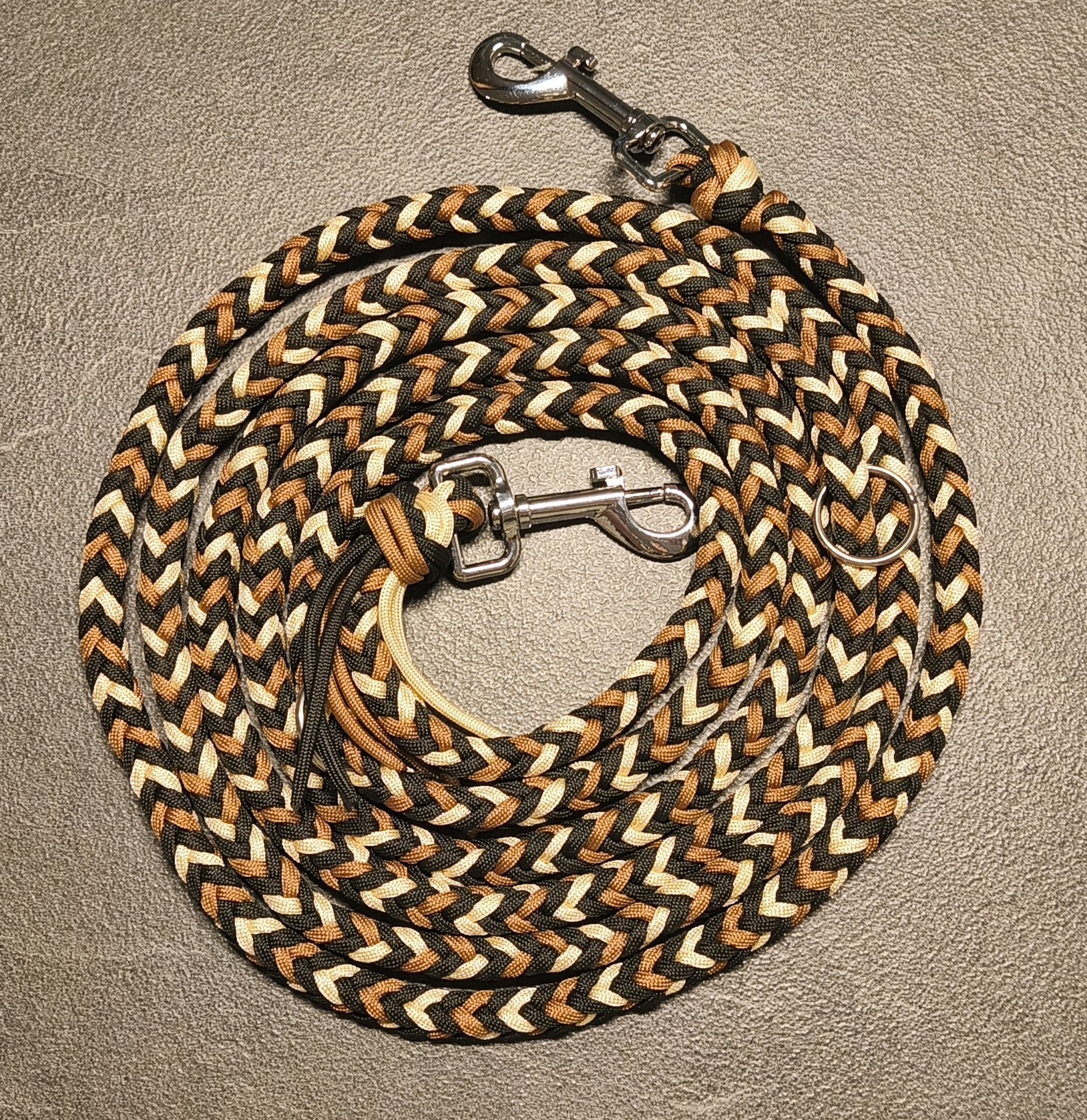 Les laisses sont faits à la main en paracord , avec trois anneaux de réglages. Elles sont confortables et solides, idéals pour vos balades en compagnie de votre chien.