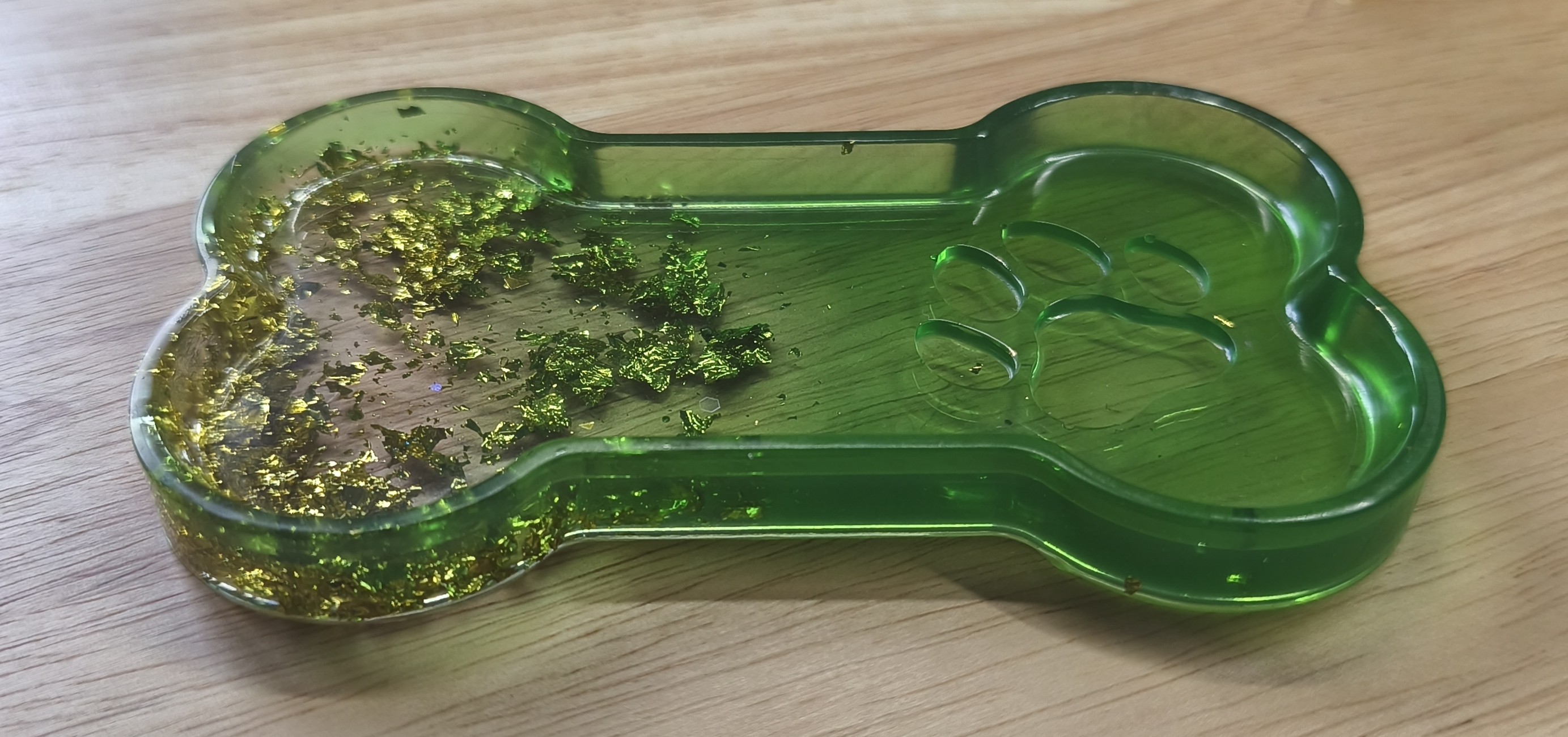 Ce vide poche en forme d'os au dimensions de 15 x 9 cm, fait  en résine époxy est pratique, original et idéal pour déposer vos bijoux, clefs, petits accessoires.