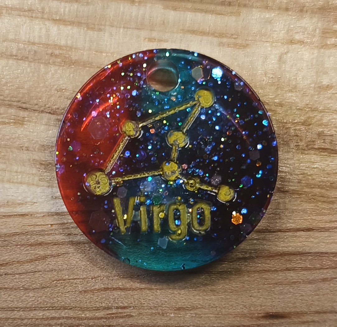 Médaille en résine époxy Ø 2,3cm. Chaque médaille est un modèle unique fait à la main.