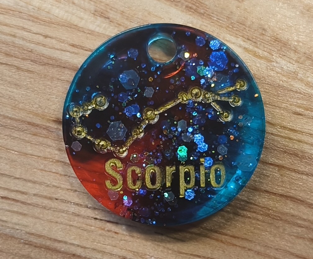 Médaille en résine époxy Ø 2,3cm. Chaque médaille est un modèle unique fait à la main.