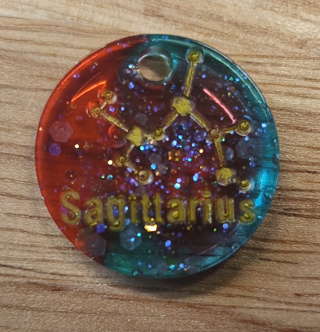 Médaille en résine époxy Ø 2,3cm. Chaque médaille est un modèle unique fait à la main.