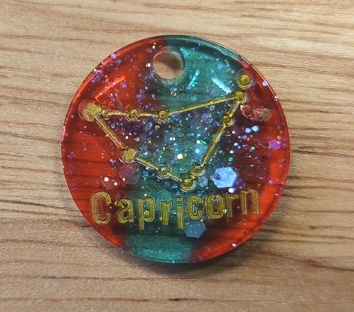 Médaille en résine époxy Ø 2,3cm. Chaque médaille est un modèle unique fait à la main.