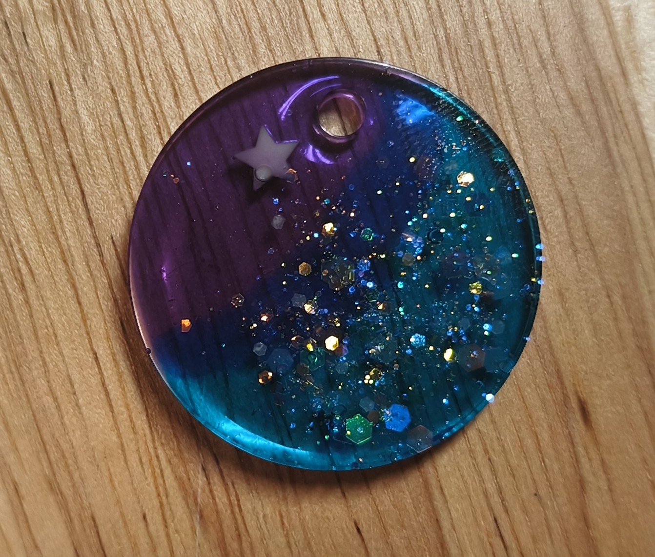 Médaille en résine époxy Ø 3,5 cm. Chaque médaille est un modèle unique fait à la main.