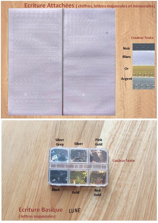 Pour le "choix du texte" merci d'écrire en respectant les majuscules ou minuscules que vous souhaitez pour " l'écriture attachée".