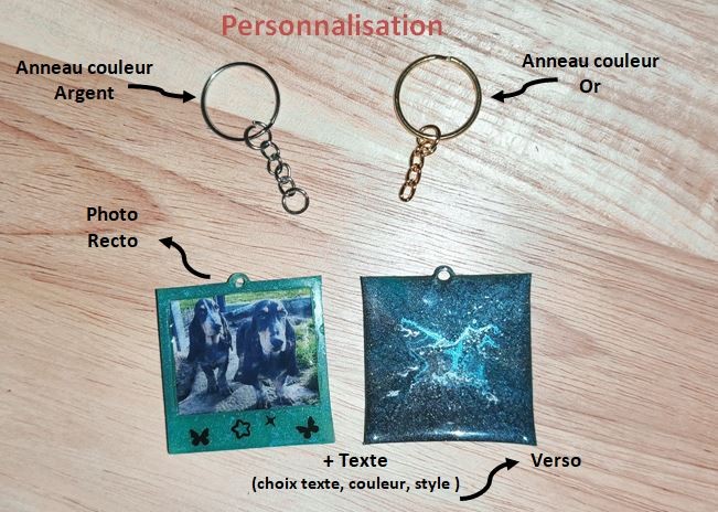 Porte Clefs en résine époxy 4,7 cm x 4,7 cm, ce porte clefs personnaliser pour avoir toujours à porter de main la photo de votre compagnon.