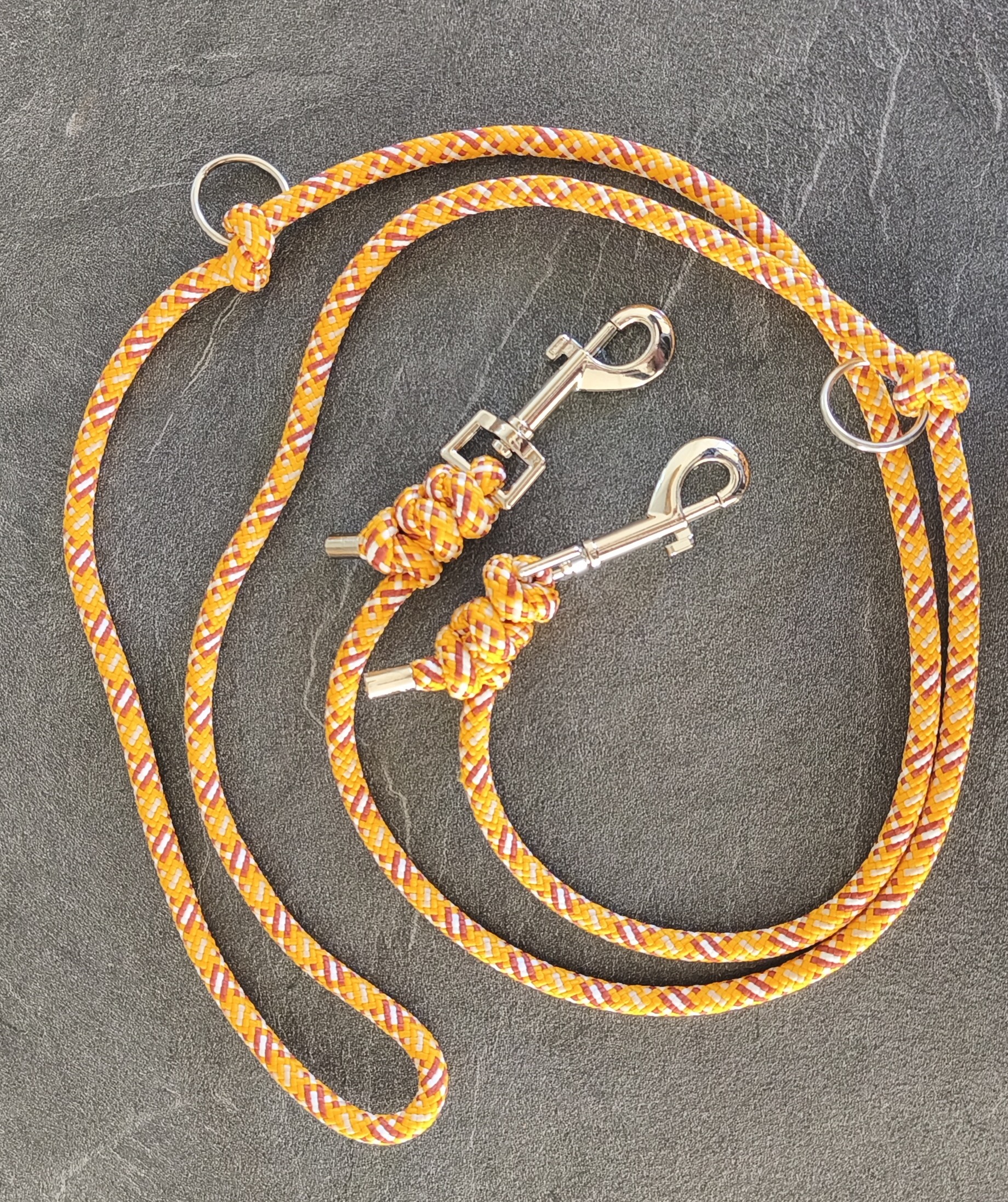 Les laisses sont faits à la main en corde de Ø 8 mm , avec deux anneaux de réglages qui peuvent se défaire et s'ajuster à la longueur que vous souhaitez. Elles sont confortables , idéals pour vos balades en compagnie de votre chien.