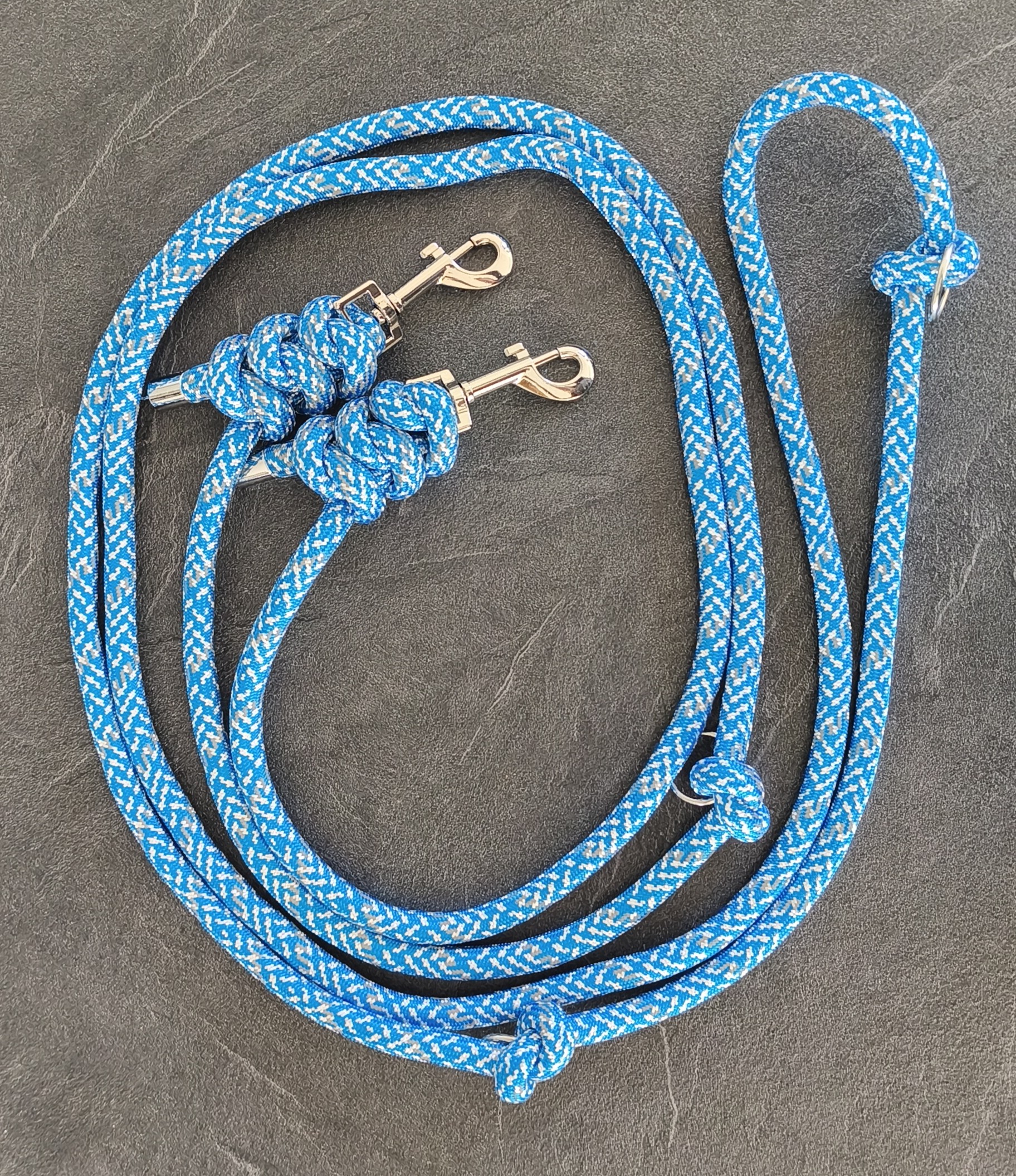 Les laisses sont faits à la main en corde de Ø 12 mm , avec trois anneaux de réglages qui peuvent se défaire et s'ajuster à la longueur que vous souhaitez. Elles sont confortables , idéals pour vos balades en compagnie de votre chien.